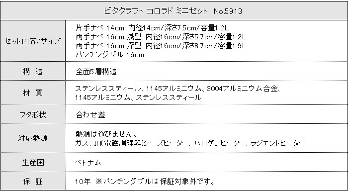 ビタクラフト コロラド ミニセット 一生付き合えるキッチンツールセットです。 [5913]