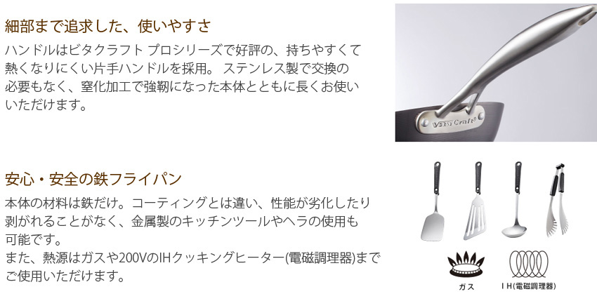 | 材質 | 本体:鉄(窒化加工)、ハンドル:ステンレススティール |