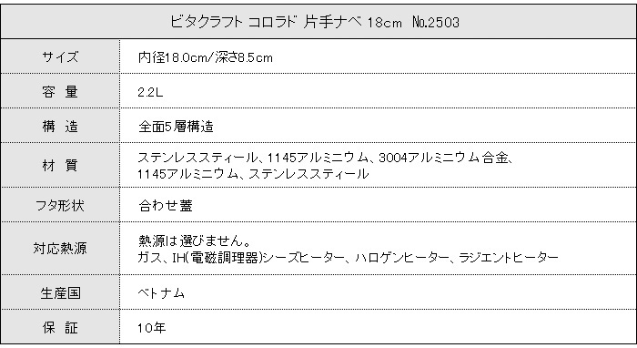 ビタクラフト コロラド 片手ナベ18cm オールステンレスでキッチンを華やかに彩ります。 [2503]