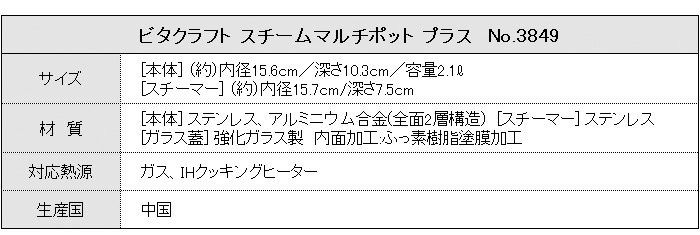 ビタクラフト スチームマルチポット プラス コンパクトなのに蒸す、揚げる、炊く、ゆでる、煮る、炒める、沸かす、とマルチに活躍。 [3849]