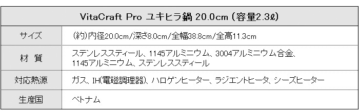 ビタクラフト プロ ユキヒラ鍋 20cm(2.3L) 全面5層構造。さっと火を通したり、小回りのきくお鍋 [0142]