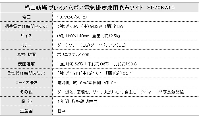 - > 椙山紡織 プレミアムボア電気掛敷兼用毛布ワイド 広々とした大きさで全身を暖めます。