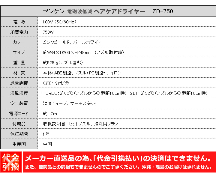 ゼンケン電磁波低減ヘアケアドライヤー 電磁波を大幅低減し、髪と頭皮をいたわりながら素早く乾かします。 [ZD-750]