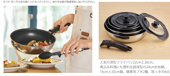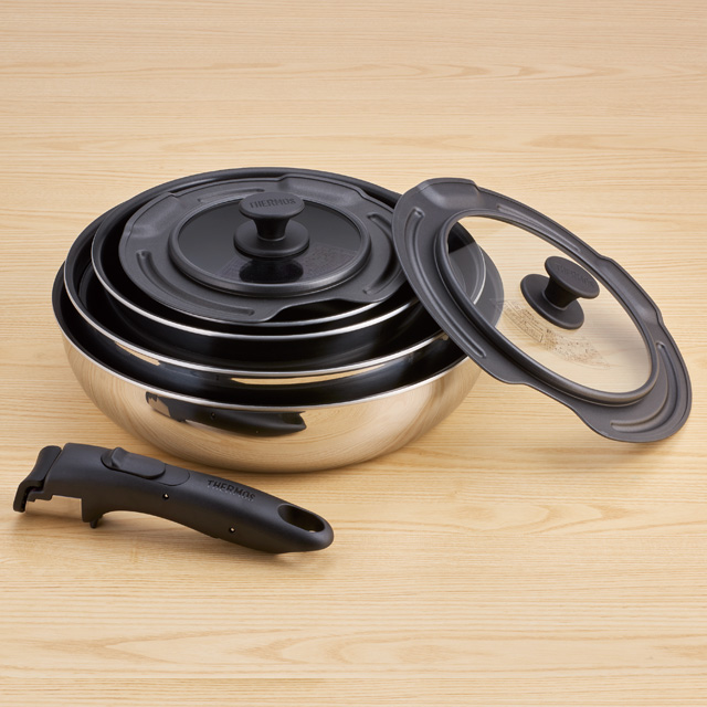 サーモス デュラブルシリーズ 取っ手のとれるフライパン8点セット IH・ガス火両方OK!ステンレスとアルミの全面2層構造で、外面ミラー仕上げでキッチンで映えること間違いなし♪