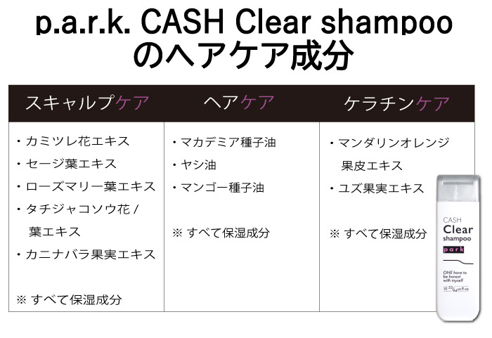 park(パーク) キャッシュクリア シャンプー CASH Clear shampoo もっちり泡が髪&頭皮汚れをスッキリ落とすボタニカルシャンプー ハリ・コシ・ツヤを与える保湿成分配合でサラサラヘアに
