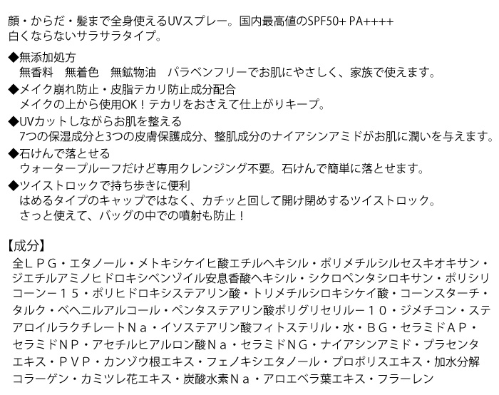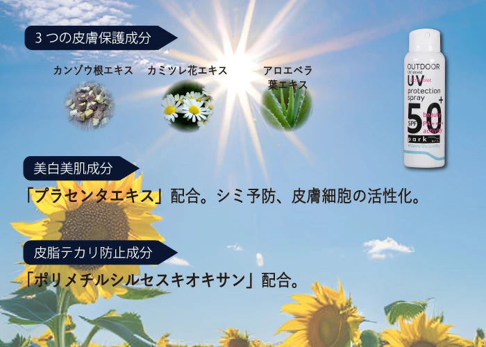 park(パーク) スーパー UV プロテクション スプレー 70g SPF50+ PA++++ 皮脂テカリなどメイク崩れを防ぎつつ、保湿成分、皮膚保護成分を配合して肌を整える