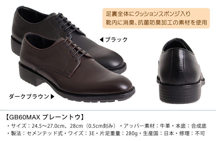 リーガルコーポレーション ビジネスシューズ [プレーントウ] 足裏全体にクッション性に優れたソールを内蔵。歩きやすく、疲れにくいビジネスシューズ [GB60MAX]