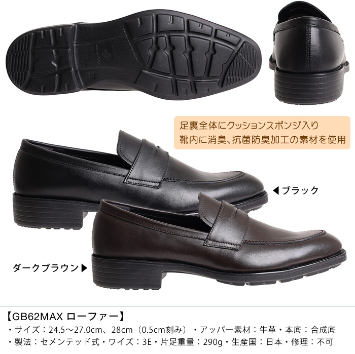 リーガルコーポレーション ビジネスシューズ [ローファー] ブラック 足裏全体にクッション性に優れたソールを内蔵。歩きやすく、疲れにくいビジネスシューズ [GB62MAX]