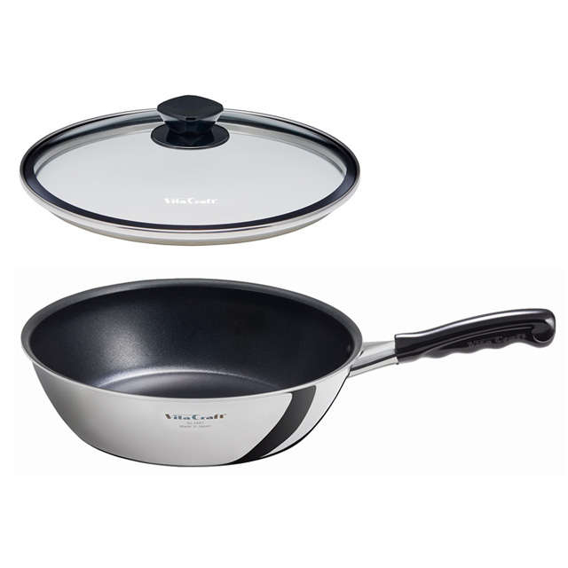 ビタクラフト カーペンター ウォックパン 26cm+ 内径26cmフライパン用ガラス蓋 セット ビタクラフトの定番モデルと統一感を持たせた、高級感のあるデザインです。