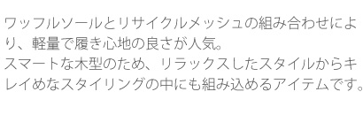 ■カラー:ホワイト ■サイズ:23.0-25.0cm ■ワイズ:2E■アッパー(甲革):合成皮革/リサイクルメッシュ ■本底:合成底 ■製法:セメンテッド式■生産国:ベトナム ■修理:不可 ※ユニセックスモデル